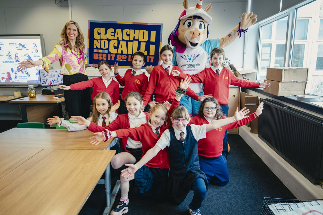 Gaelic speaking pupils, and the Glasgow 2026 Commonwealth Games mascot, Finnie