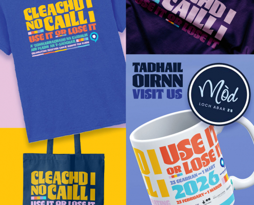 Tadhal air a’ Bhòrd Bhàthair agus Fhiosrachaidh againn aig a’ Mhòd Nàiseanta // Visit our merchandise and information stand at the Royal National Mòd
